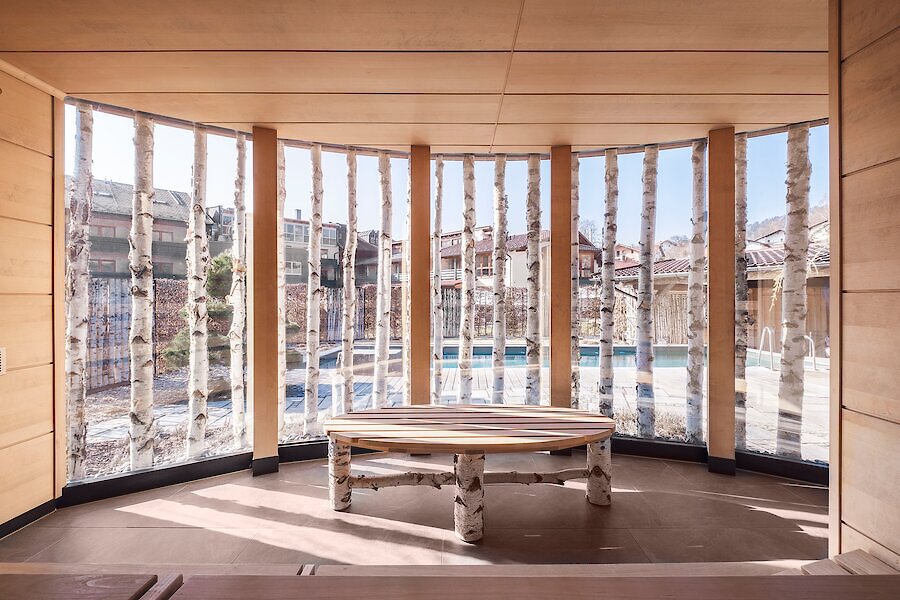 - Blockhaussauna mit Panoramafennster (90°C) & Event-Saunaaufgüssen